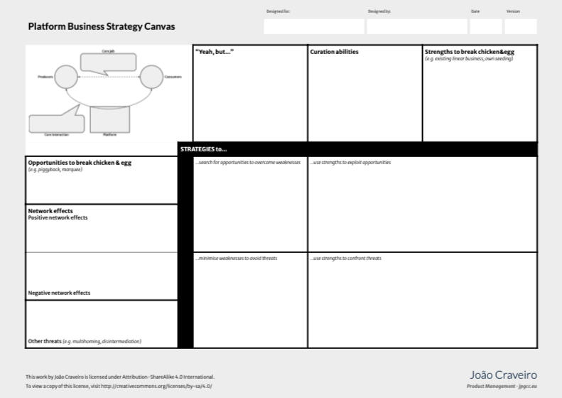 The Platform Business Strategy Canvas helps you put them together and play them against each other to craft a successful strategy.